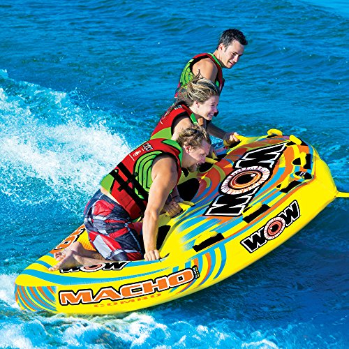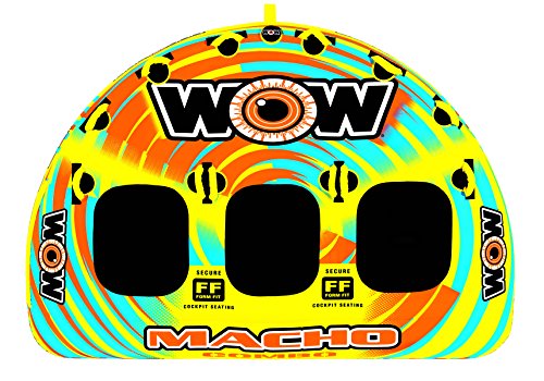 -. Binding : Misc. -. Brand : WOW Sports -. Feature : Designed for up to 3 riders / UV treated FLEX-SIT material and nylon harness / Secure Form-Fit seating right in the middle of the tube / Dimensions: 68L x 98W in. / Tow point featured at the front -. Label : WOW Sports LLC -. Manufacturer : WOW Sports LLC -. MPN : 16-1030 -. PackageQuantity : 1 -. PartNumber : 16-1030 -. ProductGroup : Sports -. ProductTypeName : SPORTING_GOODS -. Publisher : WOW Sports LLC -. Studio : WOW Sports LLC -. Title : WOW World of Watersports Macho 3 Person Ski Tube