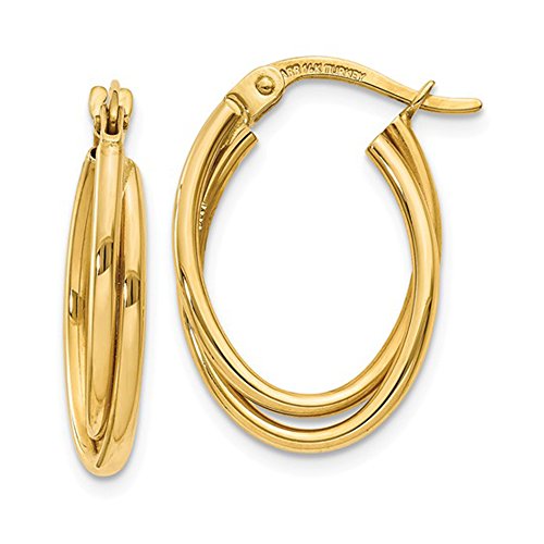 This pair of hoop earrings will grace your ears with lightness, simplicity, and elegance. With its sweeping crossover tube design and high polished finish, you can wear these oval hoop earrings for any occasion. A secure click-down clasp with hinged post means they're a cinch to put on and will stay put all day.Each item comes gift wrapped in LooptyHoops brand packaging with informational cards on how to wear and care for your jewelry.