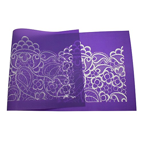 ART Kitchenware 19.3"×7.5" Large Alencon Lace Floral Mesh Stencil Rose Flower Cake Stencil Wedding Cake Side Stencils Template Mold Cake Decorating Bakery Tool MST-05 Purple Color