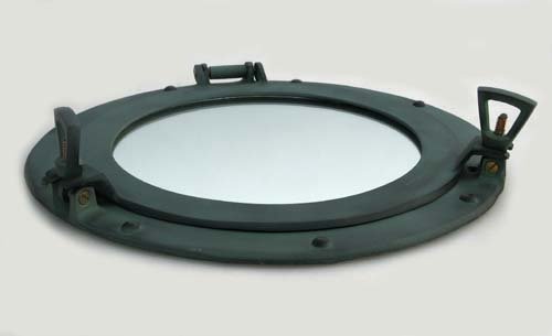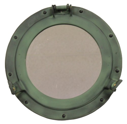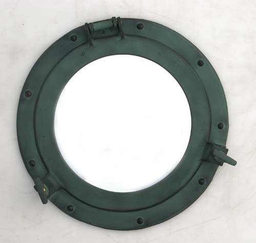 11" Aluminum Porthole Mirror with Green Finish - Nautical Ship Decor