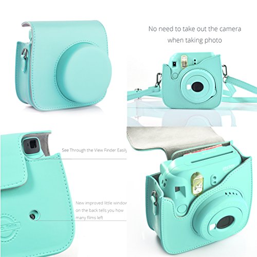 Fujifilm Instax Mini 8+ Instant Film Camera 8-in-1[Funny Pack] Accessories Bundles (Include Instax Mini 8+ Case/ mini Album/message Sticker/Filter/Wall Hang Frames/mini Film Frame/Film Stickers)-Mint