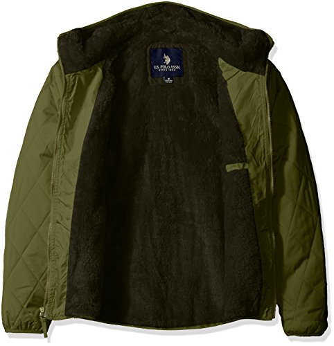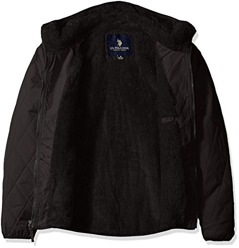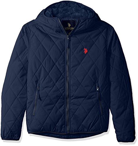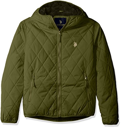 -. Binding : Apparel -. Brand : U.S. Polo Assn. -. Department : mens -. Feature : Percent closure / Elastic at cuffs, hood, and waist / Quilted diamond design / Hooded / Embroidered logo -. Label : US Polo Assn Mens Traditional Collections - Outerwear & Swim -. Manufacturer : US Polo Assn Mens Traditional Collections - Outerwear & Swim -. Model : 10-5724-Q8 -. PackageQuantity : 1 -. ProductGroup : Apparel -. ProductTypeName : OUTERWEAR -. Publisher : US Polo Assn Mens Traditional Collections - Outerwear & Swim -. Studio : US Polo Assn Mens Traditional Collections - Outerwear & Swim -. Title : U.S. Polo Assn. Men's Diamond Quilted Hooded Jacket