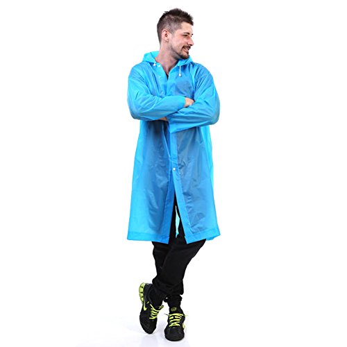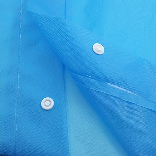 The rain coat has drawstring hood, sleeves and plastic snap closure. Can prevent heavy rain, keep you dry