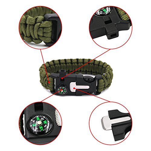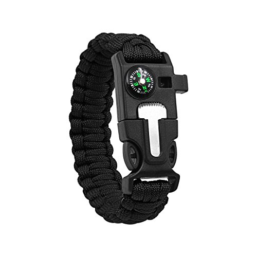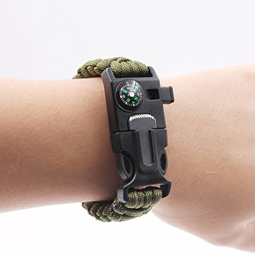 - PORTABLE GEAR BRACELET:can wear on your hand wherever you go,also can put in your bag,waterproof compass embedded in the buckle provides easy safety for navigation while travailing; Built-in whistle can be used for signaling help