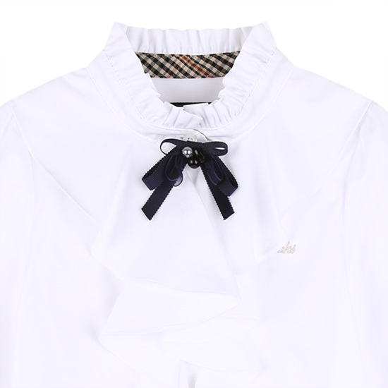 ■상품설명-소프트한 터치감의 프릴 블라우스-개성있는 브로치는 탈부착이 가능-단정&고급스러운 분위기로 다양한 스타일링에 용이