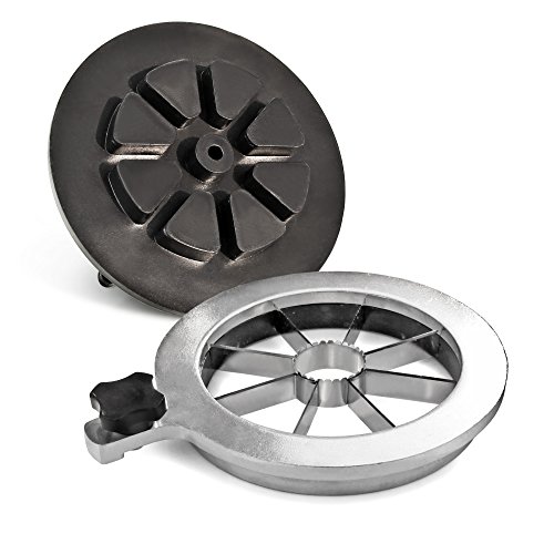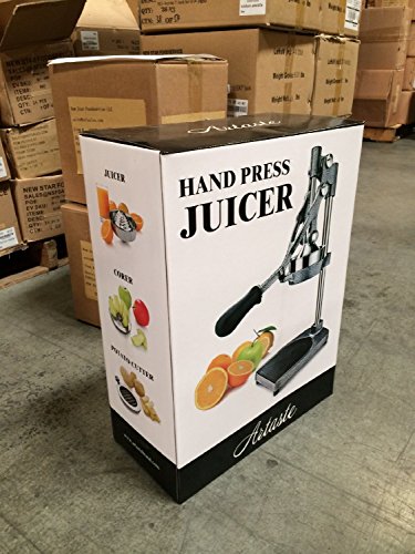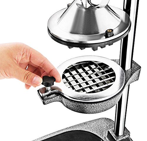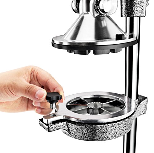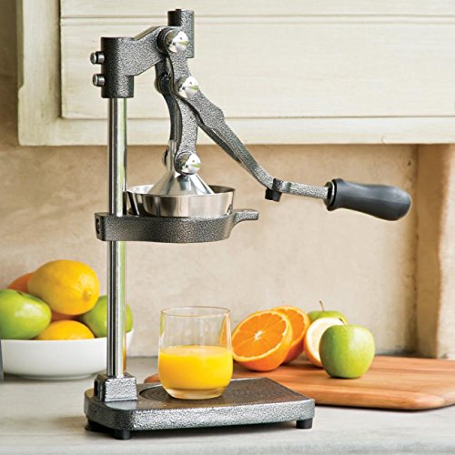 -. Feature : 3-In-1 versatile machine: juicer, apple or pear corer and divider, potato cutter / The body is made from ultra-strong, durable cast iron & has an enamel powder coated finish which resists citrus acids, pitting & corrosion / Sure grip rubber handle is ergonomic & easy to use / Wide heavy base with suction feet is designed for stability while juicing, coring & chipping / Professional metal grey color can perfectly match different kinds of background