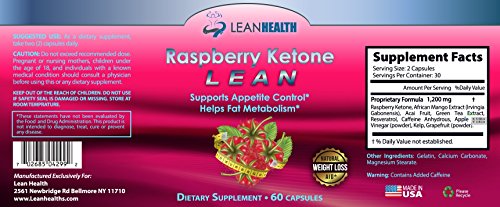 -. Binding : Health and Beauty -. Brand : Lean Health -. EAN : 0702685042992 -. Feature : CLINICALLY PROVEN WEIGHT LOSS SUPPLEMENT AND APPETITE SUPPRESSANT that works! NO SIDE EFFECTS, NO BLOATING, BURN FAT QUICKLYf / THIS IS THE ULTIMATE BLEND TO GET SLIM. This formula Increases Lipolysis (Fat Breakdown) and Increase Your Body's Metabolism, Allowing You to Burn Stored Fat and Shed Pounds Quickly and Efficiently. FREE E-BOOK Benefits of Raspberry Ketones / DYNAMIC POWERFUL 1200mg Formula that contains, Acai Berry, African Mango, Grapefruit Powder, Apple Cider Vinegar, Resveratrol, Green Tea and Kelp that helps you lose weight. 100% Best Pure Formula out! / IMMEDIATE STOMACH SHRINKAGE? Works great for belly fat, even if you've fought weight loss all your life. / GMP Certified and MADE IN THE USA -. IsAdultProduct : 0 -. Label : Lean Health -. Manufacturer : Lean Health -. ProductGroup : Health and Beauty -. ProductTypeName : HEALTH_PERSONAL_CARE -. Publisher : Lean Health -. Studio : Lean Health -. Title : Raspberry Ketones Lean - Free E-Book - Top Rated Formula antioxidants -1200mg - African Mango Acai Berry Green Tea Extract Resveratrol Apple Cider Vinegar and Kelp in one capsule - Free E-Book Benefits of Raspberry Ketones -. UPC : 702685042992