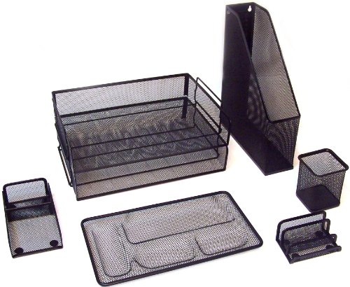 Majestic Goods Office Supply Mesh Desk Set, Black 7 Piece (M20B)