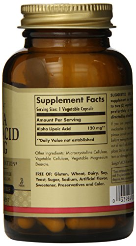 Solgar Alpha Lipoic Acid Vegetable Capsules, 120 Mg, 60 Count