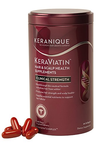 KERAVIATIN HAIR & SCALP HEALTH SUPPLEMENTS contain an innovative, premium formula that blends powerful vitamins, minerals, and nutrients to help revitalize your hair. KeraViatin promotes hair strength and supports scalp health from within. The Women’s Hair Growth Experts at Keranique know 1 in 3 WOMEN are actively experiencing hair loss. Factors such as stress, genetics, aging, hormones or over-styling contribute to hair loss but, the simple fact is, hair is lost in two places. Keranique products treat hair loss at both the root and along the shaft. Whether taken alone or with the Keranique Hair Regrowth System, KeraViatin will help revitalize your hair and boost your results.