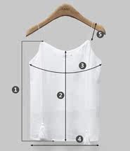 尺码 ①前衣长 ②后中长 ③胸围 ④下摆围 ⑤吊带长