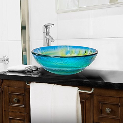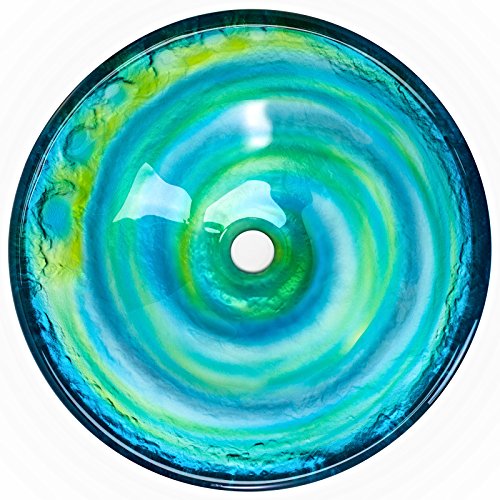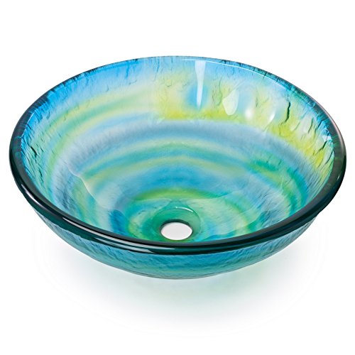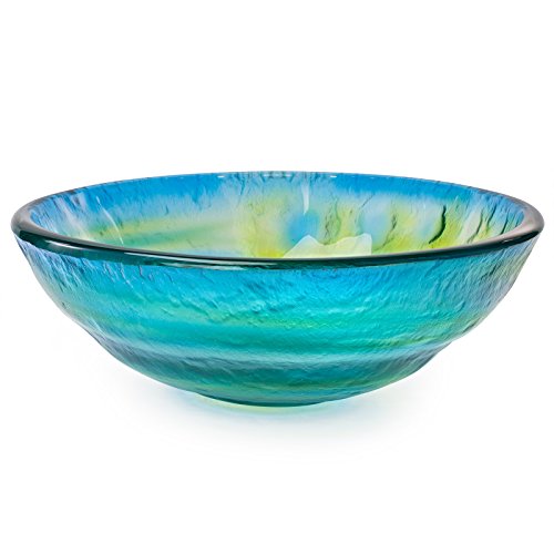 Tempered Glass Vessel Bathroom Vanity Sink Round Bowl, Glazed Multi Color Yellow Blue Green