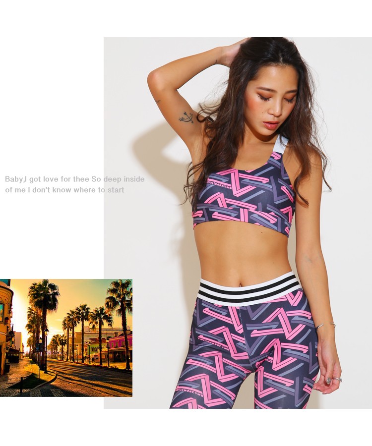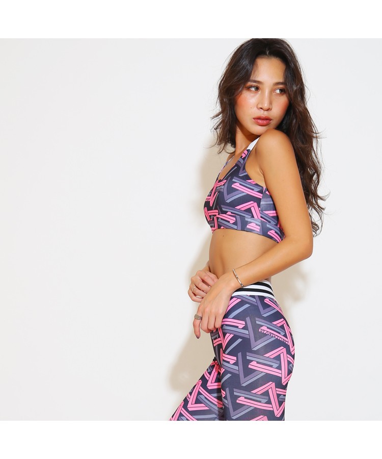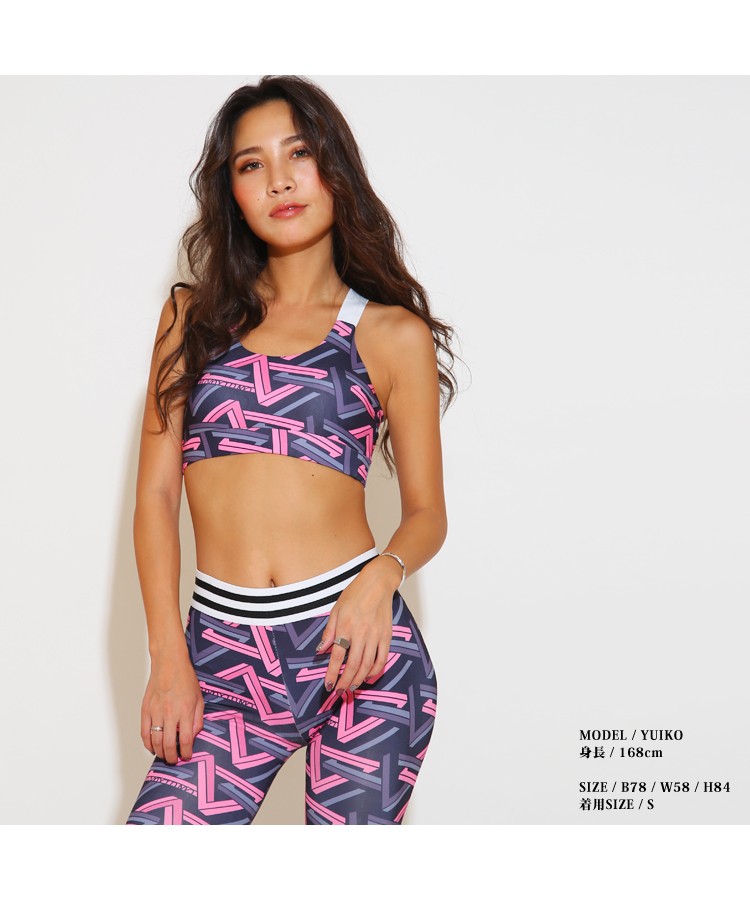 | 商品特徴 | LAVIA SPORT(ラヴィアスポーツ)から新作のスポーツウェアが入荷しました。ブラトップの肩紐は太めのゴムタイプとなり後ろはクロスデザインとなっております。上半身をしっかりとホールドしてくれます。可愛い色合いのジオメトリック柄でアクティブシーンのやる気をUPさせてくれます。ツルッとしたさわり心地でストレッチ性のある生地は伸縮性に優れていて、アンダーバスト、ウエスト部分にはゴムが入っているので安定感も抜群です。ランニング、フィットネス、人気のヨガなど幅広いシーンで活躍間違いなし!トップスはパット無し、パットポケット有りとなります。 |