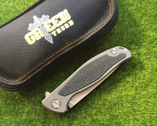 Green thorn f95 플리퍼 접는 칼 d2 블레이드 tc4 titanium 탄소 섬유 핸들 야외 캠프 사냥 포켓 과일 나이프 EDC 도구