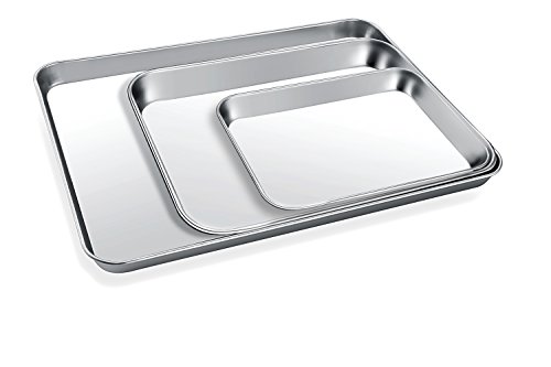 【Multi Size】Set of 3, Large 16L x 12W x1H inch, Medium 12L x 10W x 1H inch,Small 9L x 7Wx 1H inch,Perfect to be used as cookie sheet or baking sheet for your regular oven and toaster oven.