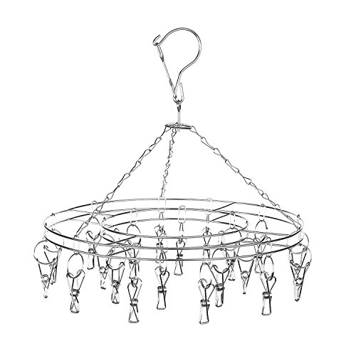 iTrustech Hanging Drying Rack Laundry Clip and Drip Hanger Stainless Steel with 20 Clips (Round Shape 20 Metal Clothespins)