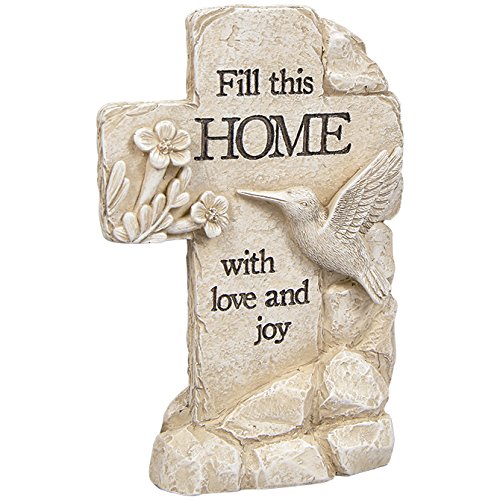 Fill This Home with Love Joy Hummingbird Sandstone Look 4 x 6 Inch Resin Decorative Pedestal Cross