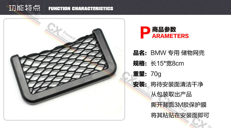 路达威 宝马 装饰 x1x3x5x6 新1系3系GT5系 车载网兜 置物袋 储物