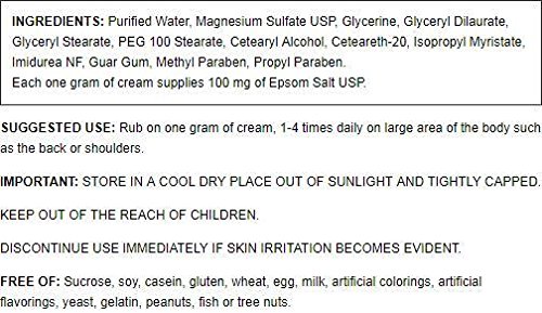 Kirkman's Magnesium Sulfate Cream is a topical Epsom salt preparation that absorbs quickly and easily. Each gram of cream supplies 100 mg of Epsom Salt USP.