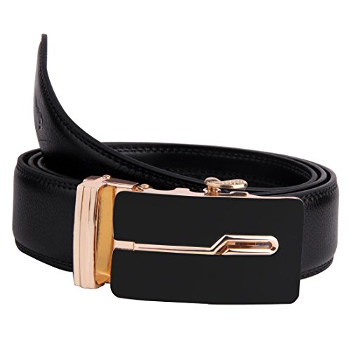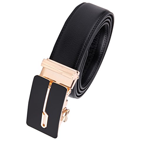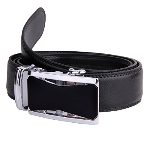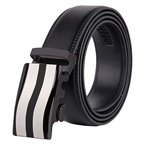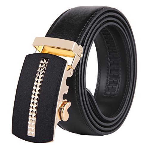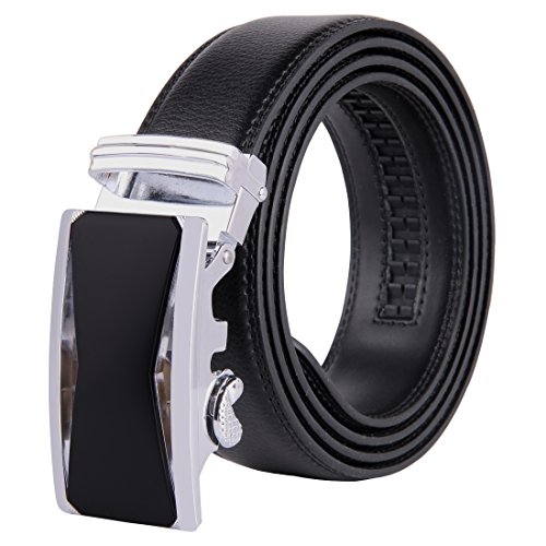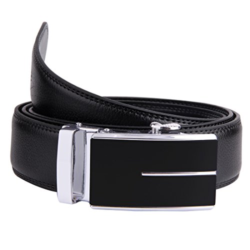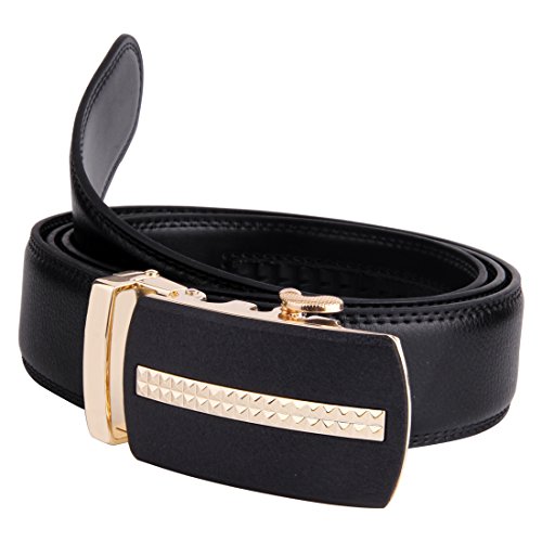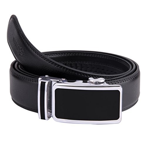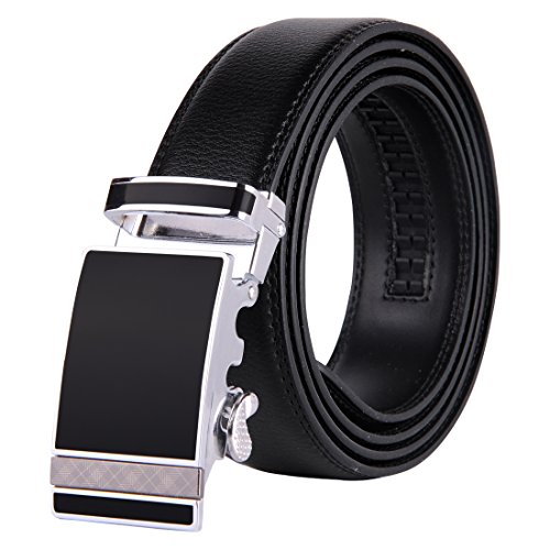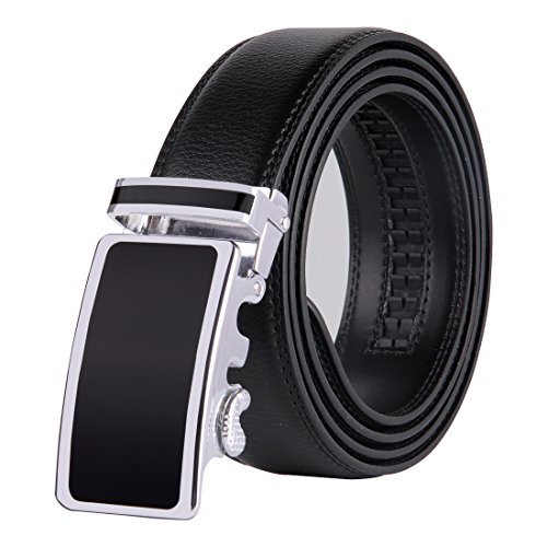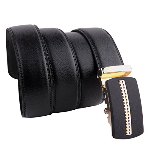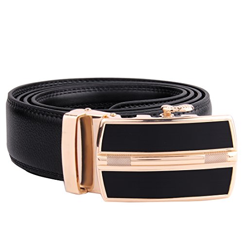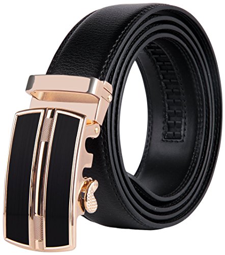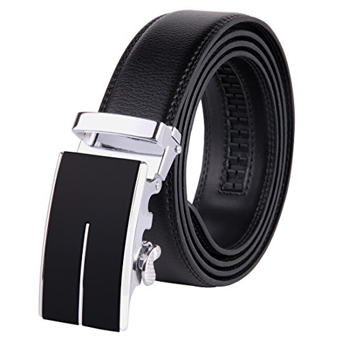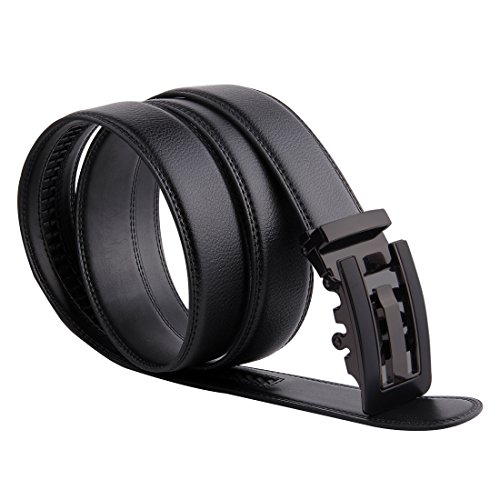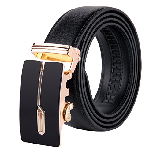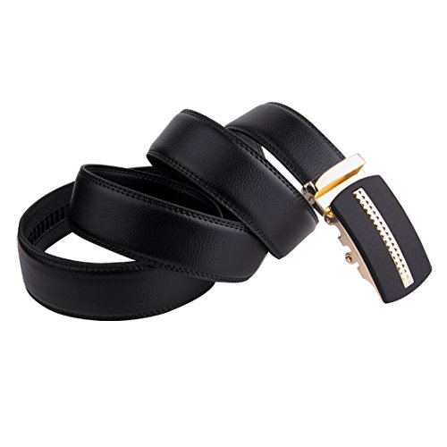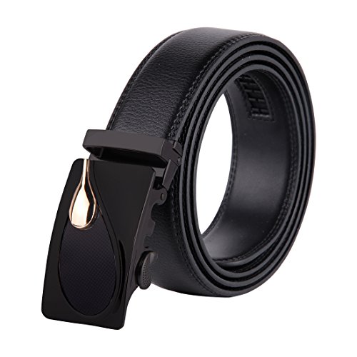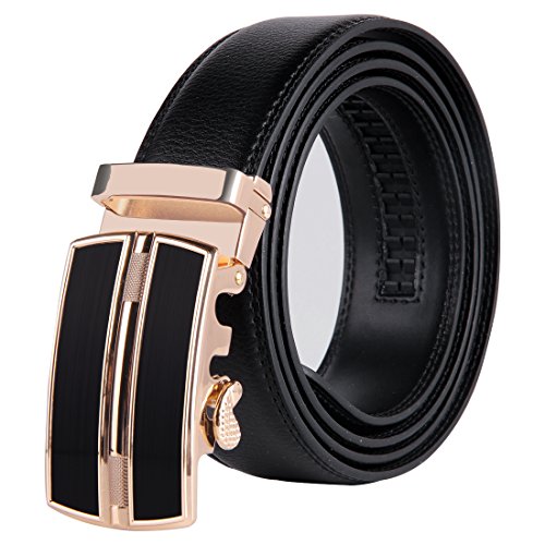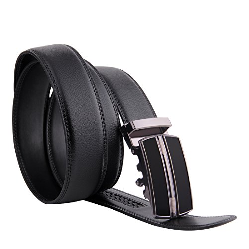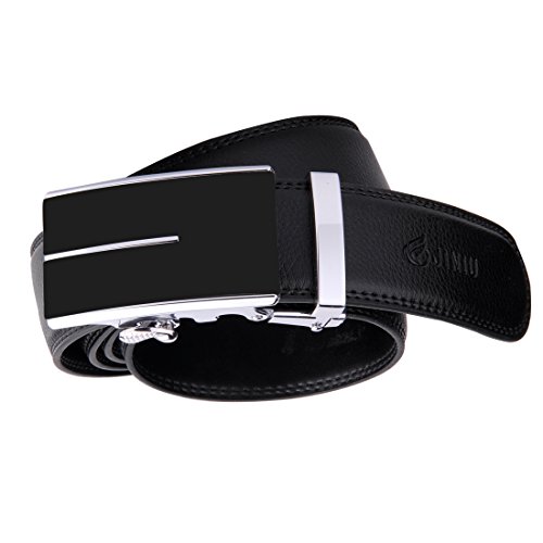 | JINIU Men's Leather Belt Automatic Buckle 35mm Ratchet Dress Black Belts Boxed |