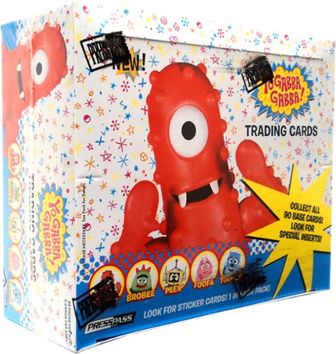 -. Binding : Toy -. Brand : Press Pass Inc. -. EAN : 0669028102723 -. Feature : Look for puzzle cards! / Mark's Magic Pictures - scratch-off cards to reveal Mark's drawing! / DJ Lance in Motion - lenticular dance move PLUS Funny Faces - before and after! / Yo Gabba Gabba! Pop-Ups! - punch-out 3D trading cards that you can stand and display! / Yo Gabba Gabba! Stickers! -. IsAdultProduct : 0 -. Label : Press Pass Inc. -. Manufacturer : Press Pass Inc. -. PackageQuantity : 24 -. ProductGroup : Toy -. ProductTypeName : TOYS_AND_GAMES -. Publisher : Press Pass Inc. -. Studio : Press Pass Inc. -. Title : Yo Gabba Gabba! Trading Cards Hobby Box -. UPC : 669028102723