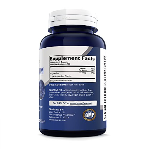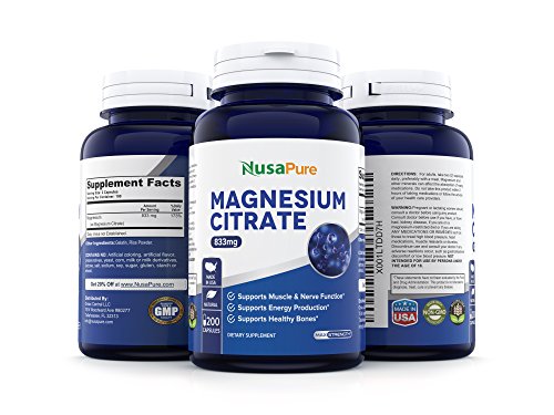 ✅ ✅ ✅ MAX STRENGTH MAGNESIUM CITRATE NON-GMO: NusaPure's maximum strength Magnesium Citrate supplement contains 833mg of pure Magnesium Citrate per serving. With 200 capsules in each bottle, you receive a full 100 day supply. Don't settle for competitive products that only offer 200mg, 400mg or 500mg of Magnesium Citrate per serving, or that only give you 90, 120 or 180 capsules, tablets or pills per bottle. *