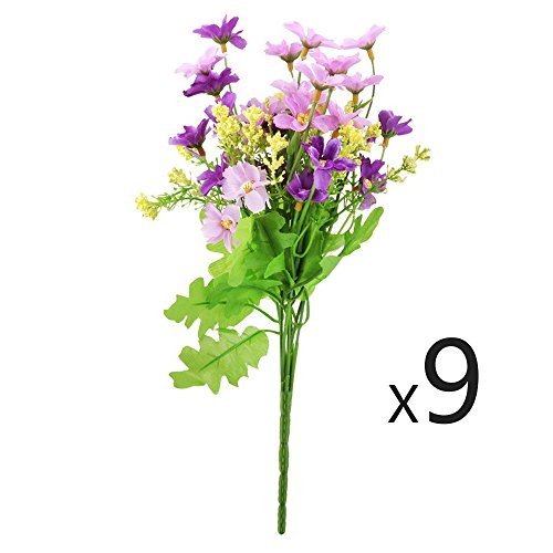 Conjugal Bliss 9PCS Mini Daisy Chrysanthemum Sunflower Artificial Flower Arrangements Outdoors Home Office Party Wedding Decorative Rayon Flowers- - Red Pink Fuchsia Yellow (Blue-violet & 9)