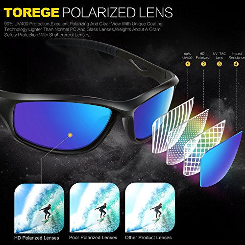 -. Feature : REVO POLARIZED LENS- 100% UV400 protection coating, blocks 100% harmful UVA & UVB Rays. Restore true color, eliminate reflected light and scattered light,make the scenery more clear and soft and protect eyes perfectly. TAC lens includes 7 layers. The 1st layer is polarization layer. The 2nd and 3rd layers are bonding layers to enable durability. The 4th and 5th layers are UV protection layers to absorb UV light. The 6th and 7th layers are shatterproof layers. / CLEAR, SUPERLIGHT, STYLISH AND DURABLE- Cool Rimless jacket frame design enables clear lower vision field. Lightweight design is ideal for motorcycle and cycling bicycle, driving, running, fishing, racing, skiing, climbing, trekking or other outdoor activities. Fashion and stylish design, with rich color combinations of frames and lens. Polycarbonate lens and frames are impact, scratch resistant, durable and unbreakable. / SOFT RUBBER NOSEPAD,Let Your Nose Feel Comfortalbe While Wearing Torege Sports sunglasses for Cycling Running Fishing Golf . / LIFETIME BREAKAGE WARRANTY ON FRAME- Frames and lens are unbreakable for no risk purchasing. In case any broken problem happens, contact the seller of Torege without hesitation to solve the problem until satisfaction. Torege provides lifetime after sale service for all Torege products. / 30 DAY MONEY BACK GUARANTEE- All Torege customers enjoy 30 Day Money Back Guarantee. Customers can return and get refunded in case the purchasing is not satisfactory for any reason. You have no risk to try.
