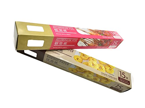 Baking Parchment Paper 15 M X 30CM(99 Feet X 12 Inch ) + Aluminum Foil Roll 15M X 30CM(99 Feet X 12 Inch ) Easy Way to Grill, Bake,Cook and Prepare Food, Pack of 2