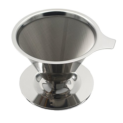 -. Title : YUESHICO Cone Coffee Double layer Mesh Filter Reusable Coffee Dripper Pour Over with Stand Holder Cafe Tool