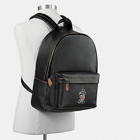 COACH CHARLES BACKPACK IN GLOVE CALF LEATHER WITH MICKEY F59018, BLACK