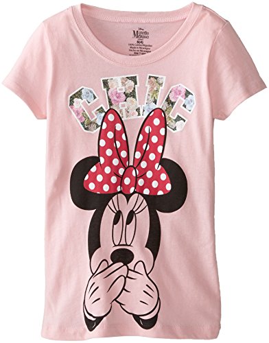 Disney Little Girls' Minnie Mouse Floral Chic Short Sleeve T-Shirt, Light Pink, 6X