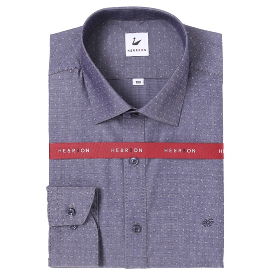 -면혼방 소재의 도트무늬의 슬림핏셔츠 .