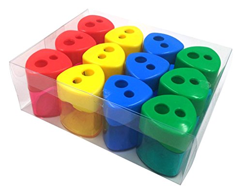 - Sold as a plastic box of 12 pieces pencil sharpeners, 4 bright colors:yellow, blue, green, red