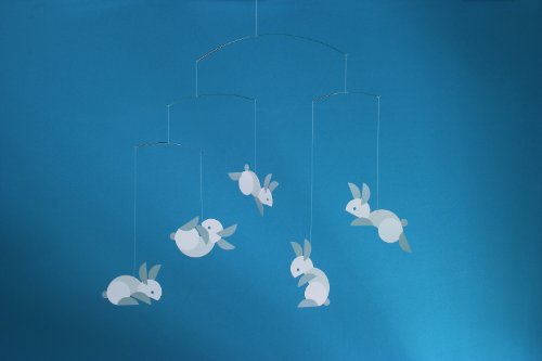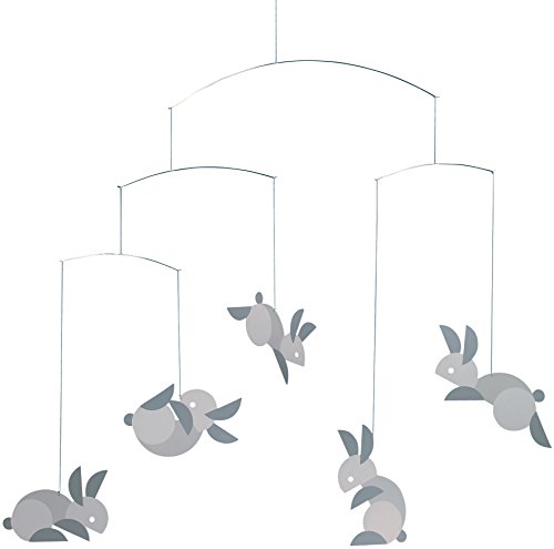 - This graphical mobile features geometrical bunnies, all made out of circles. Imagine a hill of bunnies playing with each other, all jumping, rolling or sitting. Due to the contrast between white and dark, the mobile is a perfect gift for new-born babies whose eyes are not yet developed to see all colours. You can even use the mobile for Easter. NB: Children until the age of 1 year only see black and white.