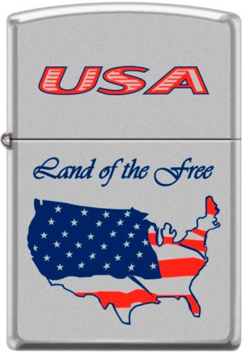 -. Feature : USA Flag Land of the Free! / Satin Chrome Finish / Original Zippo Packaging / Zippo Lifetime Guarantee