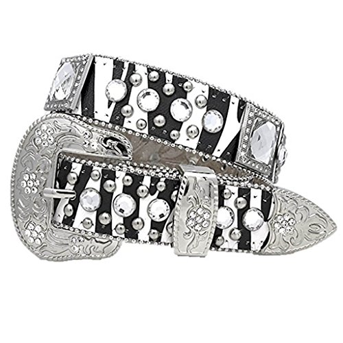 -. Title : Girl's Kids Zebra Print Square Crystal Concho Belt