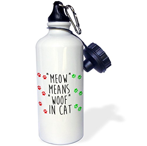 -. Title : 3dRose Carsten Reisinger - Illustrations - Meow means Woof in cat. Funny cat quote. - 21 oz Sports Water Bottle (wb_238621_1)