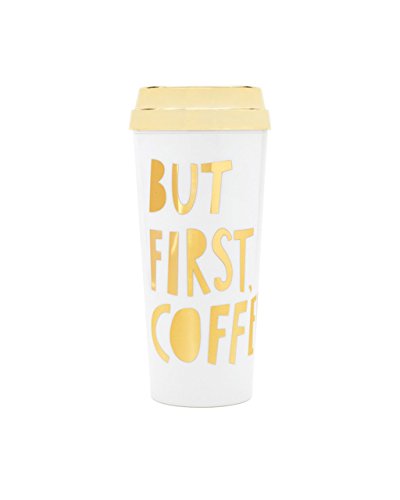 Enjoy your refreshments from the cute Hot Stuff Thermal Mug But First Coffee Gold from Ban.do. Inspired by all things fun, disco balls, confetti cannons and fizzy cocktails to name a few, Ban.do specializes in gifts and accessories that pack a stylish punch. Pop on a Ban.do with bright colors, irreverent patterns and lots of sparkles and prepare yourself for the zillions of compliments that you're gonna get.Feature