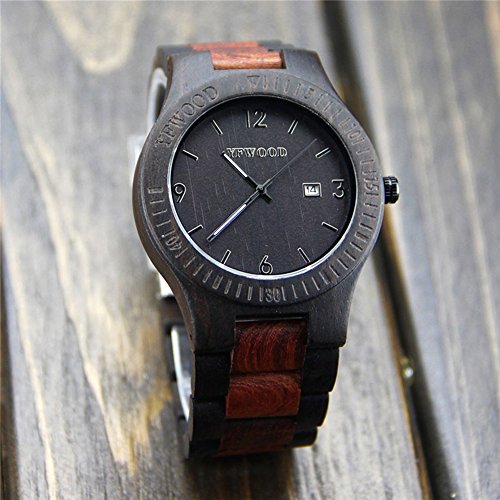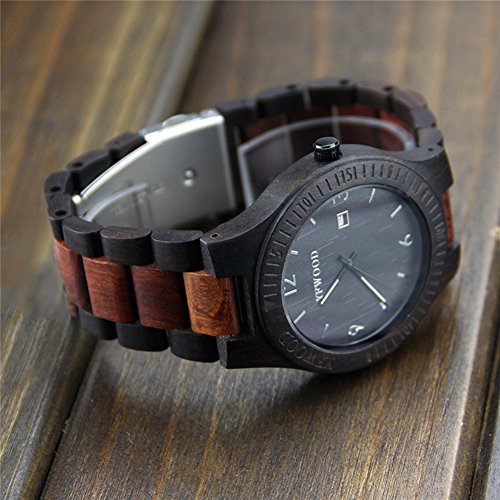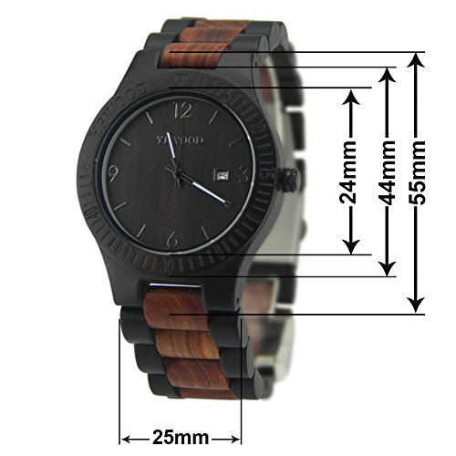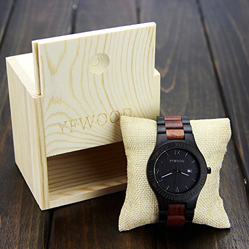 YFWOOD 목제 손목시계 맨즈에 압도적인 인기 손목시계 친절한 나무의 온기를 살린 손목시계 캘린더 부착 고품질의 우드 시계 화제성 남성용 인기