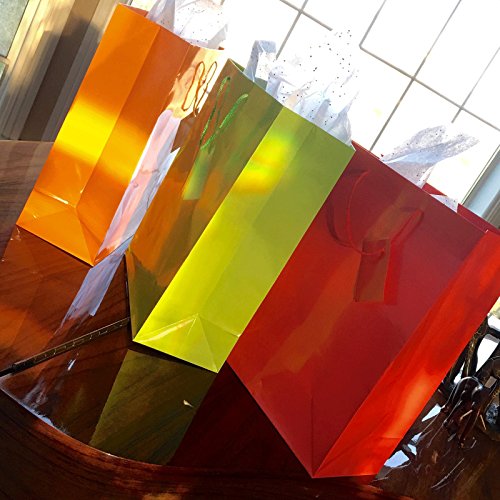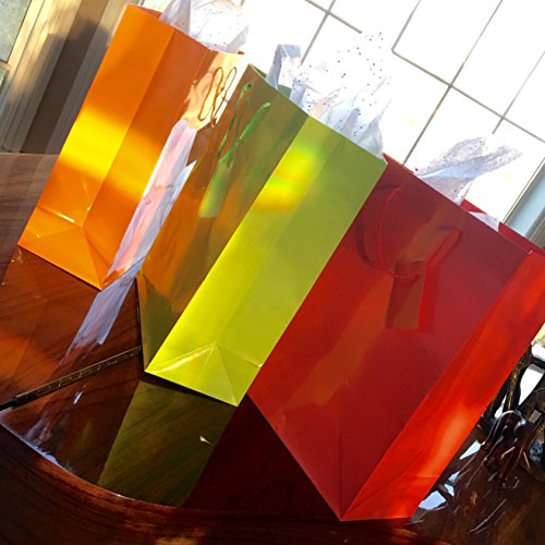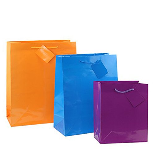 -. Feature : A colorful rainbow assortments of paper gift bags with a glossy finish and rope string handles. Perfect for birthday parties, baby showers, weddings, and basically any event! / The blank design on these colorful bags makes them a perfect canvas for letting you, or your children, go wild with painting and drawing all over these paper gift bags! / An assortment of bright neon colors including red, purple, orange, blue, yellow, and green. Comes in a pack of 12 bright neon colored paper gift bags.
