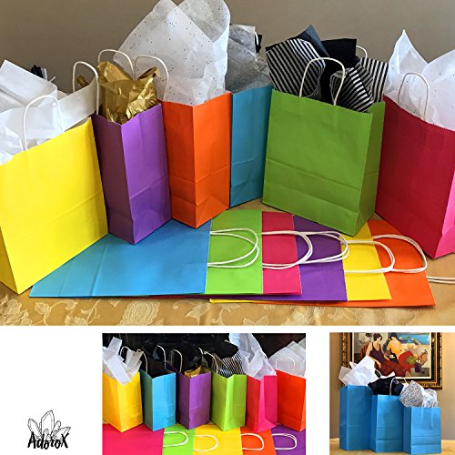 -. Title : Adorox 12 pcs Neon Colored Blank Paper Party Gift Bags Rainbow Assortment with String Handles