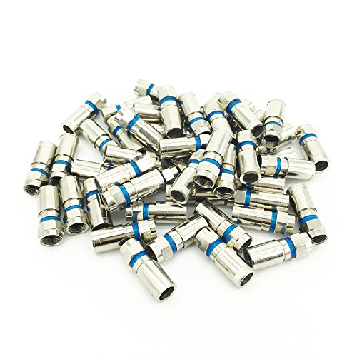 -. Feature : 50 pcs Compression connectors in package / Perfect for multiple coax applications. Such as antennas, CATV, Satellite, CCTV, etc. / RG6 Compression F connectors, waterproof connection for RG6 coaxial cable. / All metal construction, anti-corrosion nickel-plated. / 360 degree radial compression provides superior RF performance and integrity.