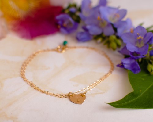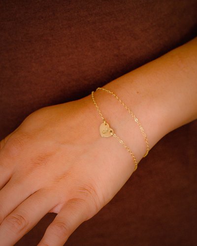 -. Binding : Jewelry -. Brand : Efy Tal Jewelry -. Department : womens -. Feature : Specify Your Initial in the 'GIFT MESSAGE' field. (Select gift option at checkout) / Gold Filled Bracelet is one piece of chain that doubles up on your wrist to measure approximately 7". Let me know if you need a different length. / Dimensions: Heart is 1/2" x 1/4'' (10mm x 5mm) / Materials: Gold Filled / Description: Dainty Heart Initial Bracelet- Gold Filled -. Label : Efy Tal -. Manufacturer : Efy Tal -. Model : 1A-C2R4-KFCU -. ProductGroup : Jewelry -. ProductTypeName : FASHIONNECKLACEBRACELETANKLET -. Publisher : Efy Tal -. Studio : Efy Tal -. Title : Initial Bracelet - Custom Gold Filled Dainty Heart, Small Monogram Delicate Simple Bracelet