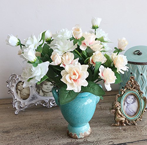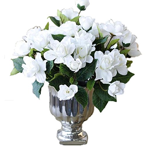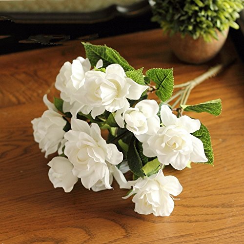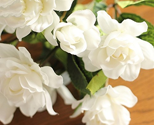 Htmeing 7 Branchs Silk Gardenia Artificial Flower Wedding Decorative for Home Decoration,2 Bouquets (white)