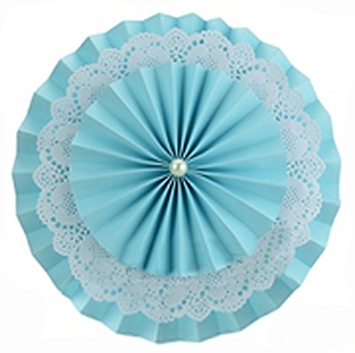 Aimeart Tissue Fan Decorations 3 Pcs 12-Inch Diameter Double Layer Paper Flowers Party Accessory, Light Blue