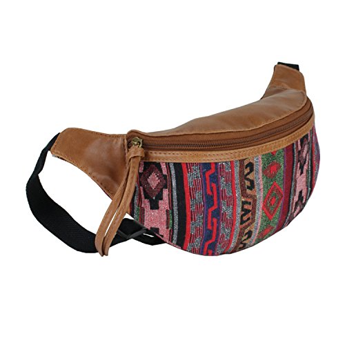 -. Brand : FLH Style -. Color : Multi Color Fabric -. Department : womens -. EAN : 0646437022729 -. Feature : Super cute fashion waist pouch for Women with zippered closure / Tribal Aztec print woven fabric w/ Brown Faux-Leather trim - No animals were harmed to create this cute bag / Pouch size is approx: 11 in. X 5 in. - Perfect for sunglasses, keys, phone, money, credit cards / Woven nylon waist strap features plastic clip buckle and adjusts to fit up to 49 inch waist / Hands Free Fashion - great for use when traveling, vacation, festival, concert, walk, hike or every day activities -. PackageQuantity : 1 -. ProductGroup : Apparel -. ProductTypeName : LAGE -. Size : One Size -. Title : Medium Size Tribal Aztec Fabric Fanny Pack, Fits up to 49 in Waist -. UPC : 646437022729