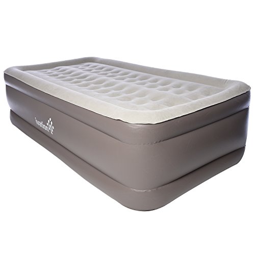 Ivation Air Mattress (Twin), Inflatable Blow Up Air Bed, w/14 Dual Sleep AirBed Coils - FirmaCoil Technology, Raised 20” Height with Built-in Electric Pump, for Guest, Travel, Camping (Brown/Beige)