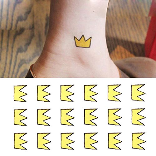 Oottati Small Cute Temporary Tattoo Yellow Crown Ankle (Set of 2)