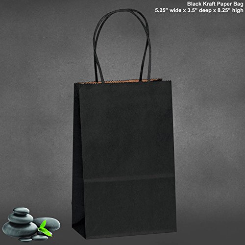 5.25"x3.25"x8" - 50 Pcs - Bagsource Black Kraft Paper Bags, Shopping, Mechandise, Party, Gift Bags